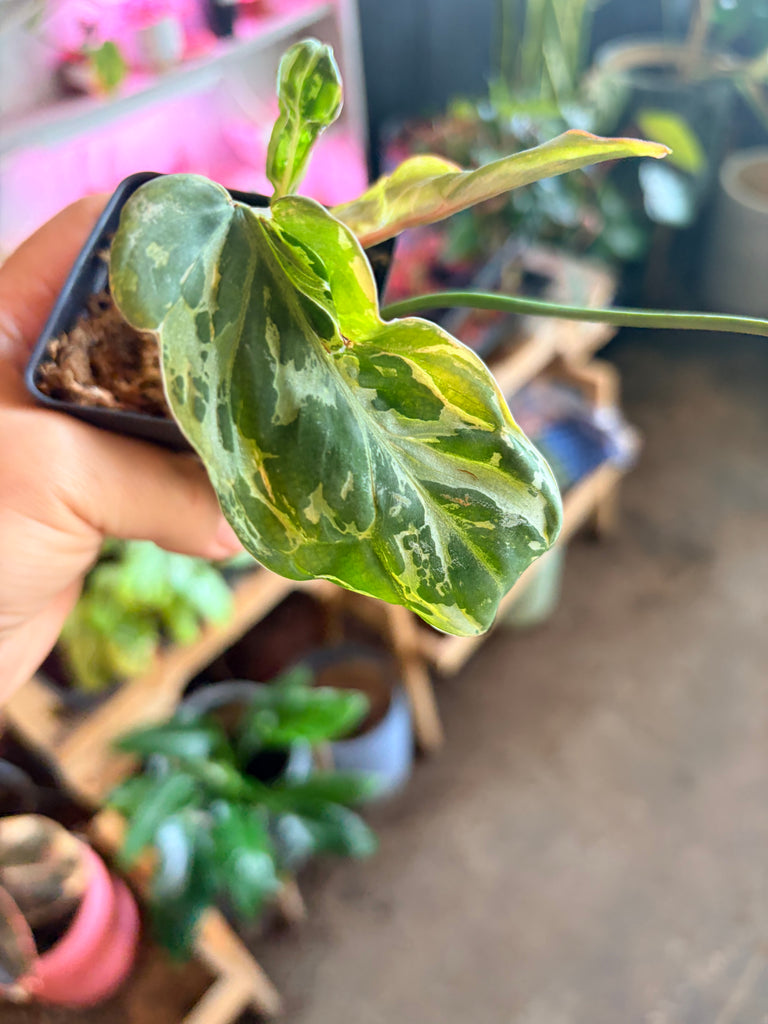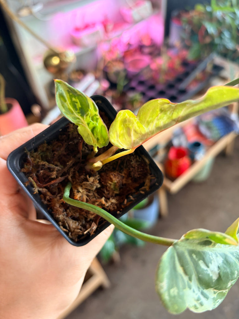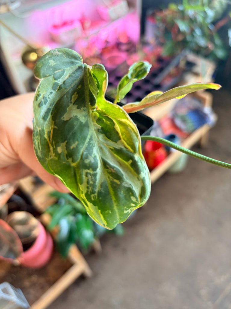 Philodendron glorisum variegated snow leopard potted in soil